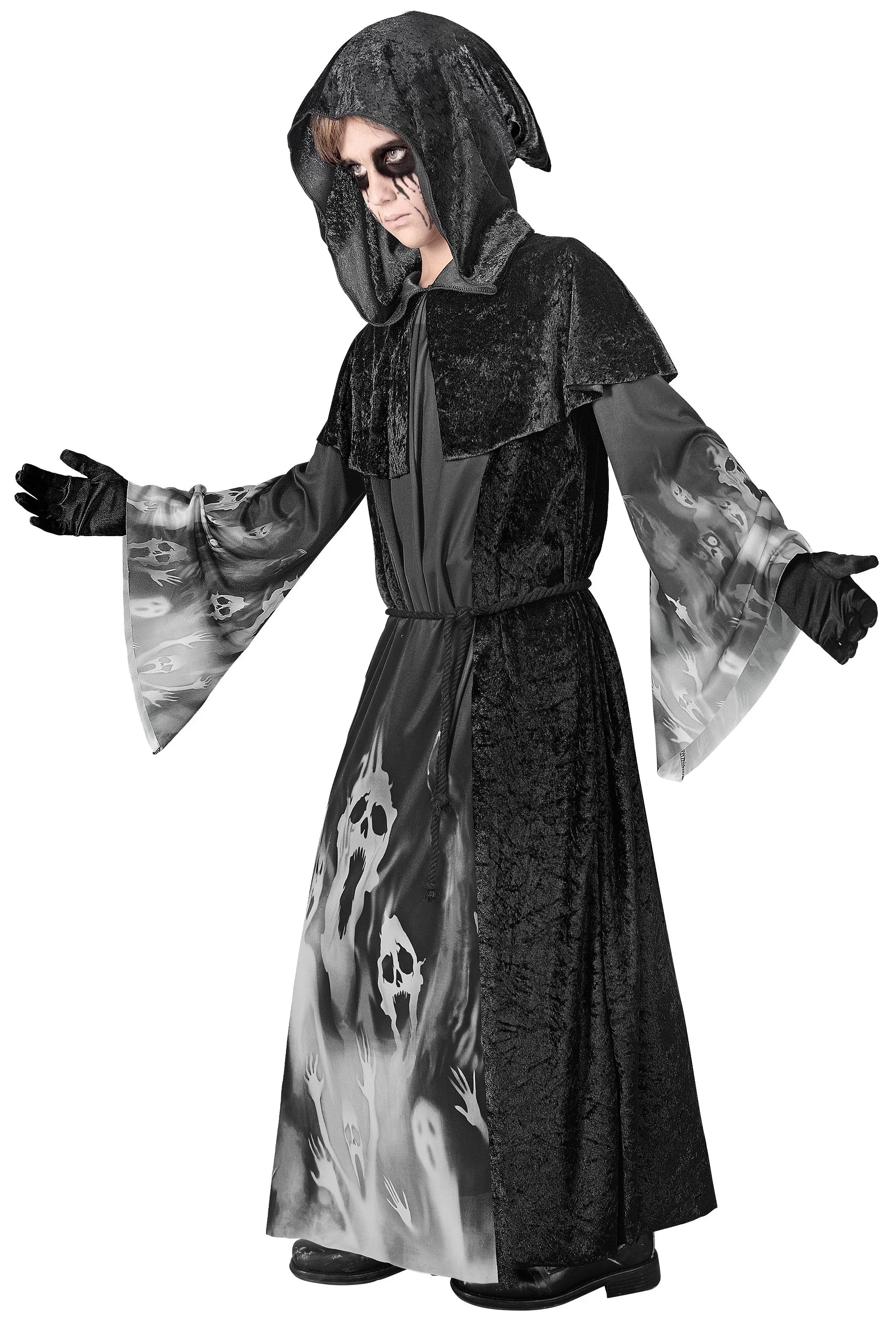 Disfraz de Brujo Nigromante con Capucha para Niño
